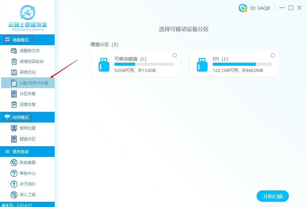 打开软件操作界面,根据数据丢失情况进行选择,如果是外接设备的通常选择u盘/内存卡恢复选项,若使用这个功能没有找回文件,可以再试试深度恢复来恢复数据。