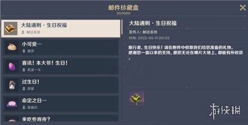 1、虽然原神在玩家生日时,会通过邮件赠送生日礼物,如蛋糕道具和一个脆弱树脂,但并不会提高玩家出金的概率。